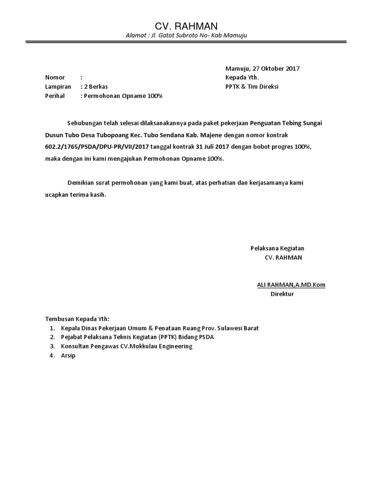 Surat Permohonan Opname Pekerjaan Latest Letter Website